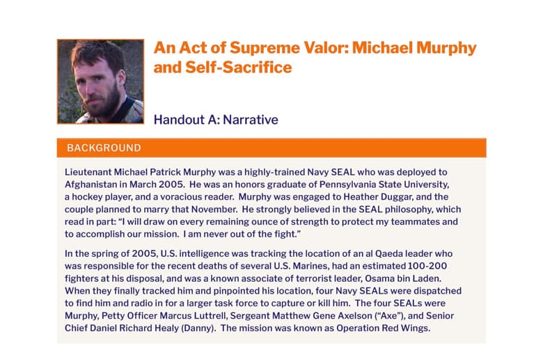 An Act of Supreme Valor: Michael Murphy and Self-Sacrifice – Handout A: Narrative