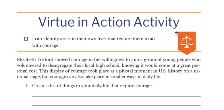Elizabeth Eckford showed courage in her willingness to join a group of young people who volunteered to desegregate their local high school, knowing it would come at a great personal cost. This display of courage took place at a pivotal moment in U.S. history on a national stage, but courage can also take place in smaller ways in daily life.