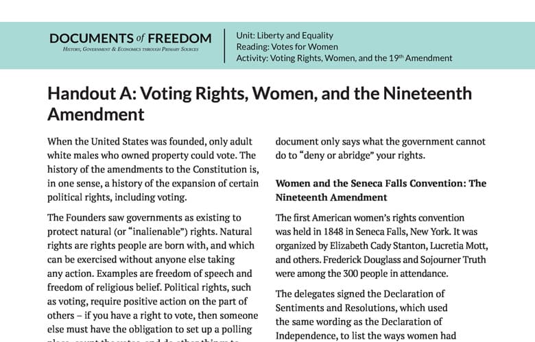 Handout A: Voting Rights, Women, and the Nineteenth Amendment