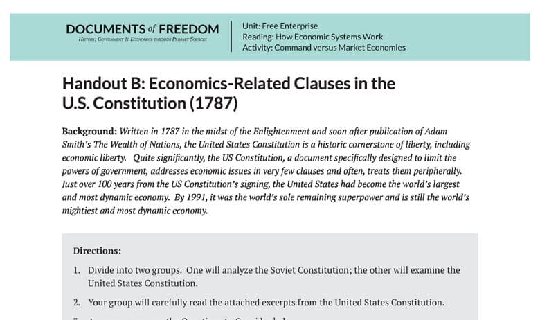 Handout B: Economics-Related Clauses in the U.S. Constitution (1787)