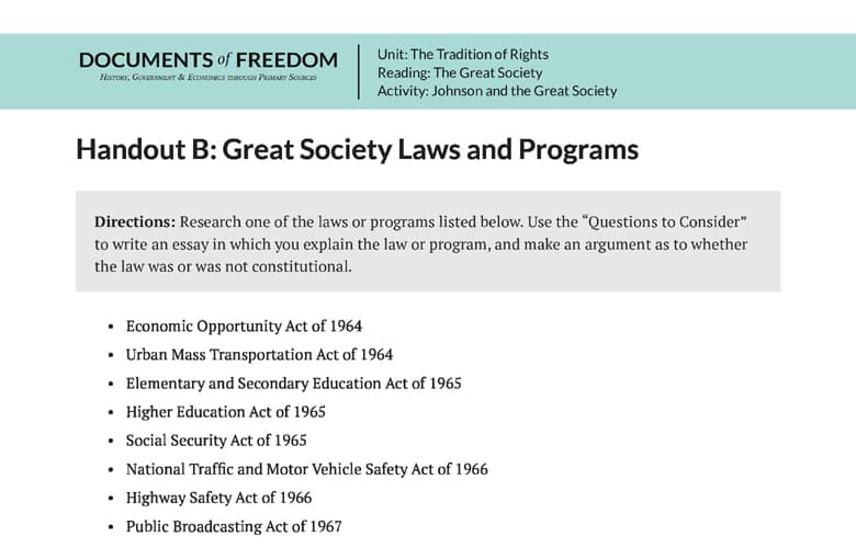 Handout B: Great Society Laws and Programs