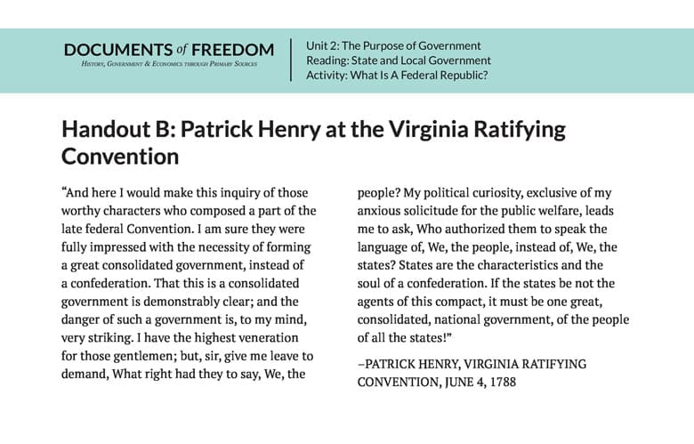 Handout B: Patrick Henry at the Virginia Ratifying Convention