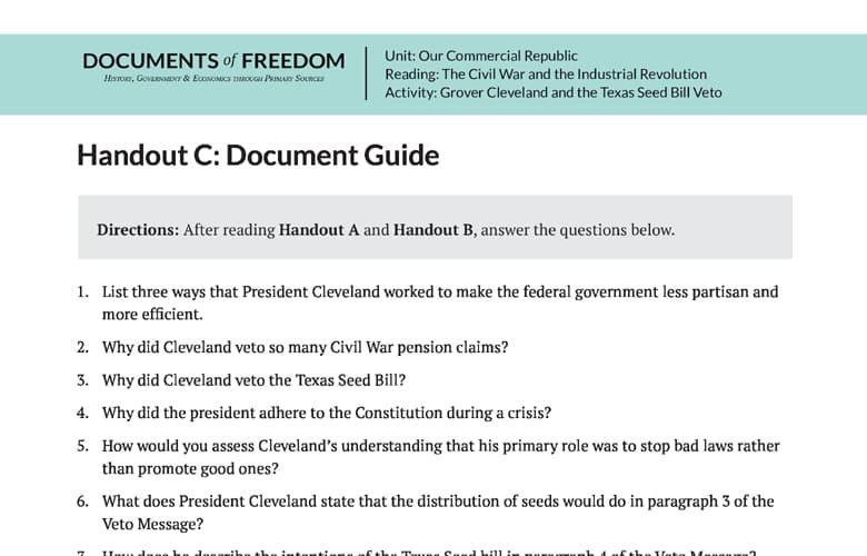 - Why did Cleveland veto the Texas Seed Bill?