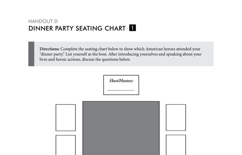 Page:Resources LibraryArrow iconCategory:ActivitiesHandout D: Dinner Party Seating Chart (Versions 1 and 2)