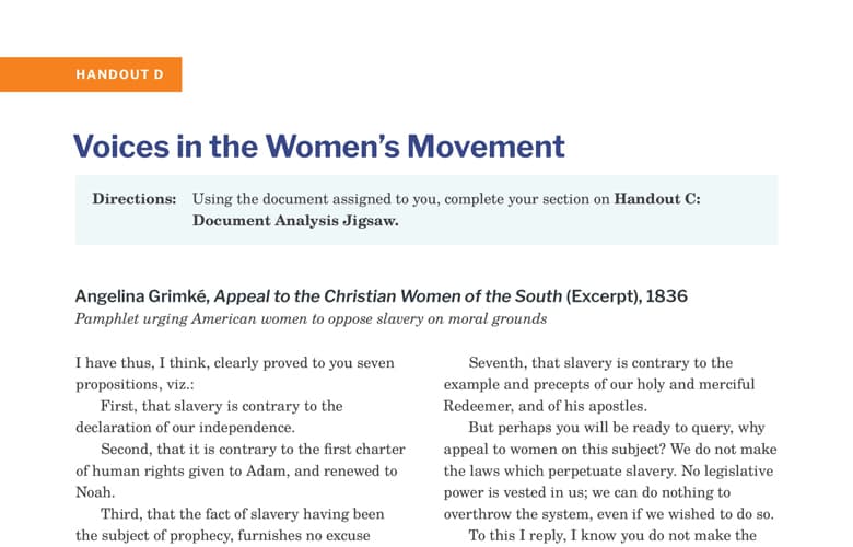 Angelina Grimké, Appeal to the Christian Women of the South (Excerpt), 1836