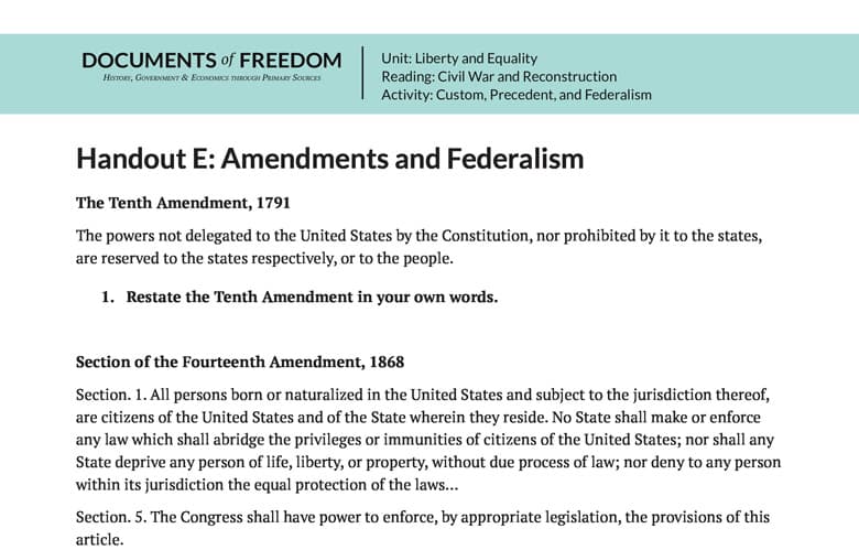 - What does the Fourteenth Amendment guarantee to residents of every state?