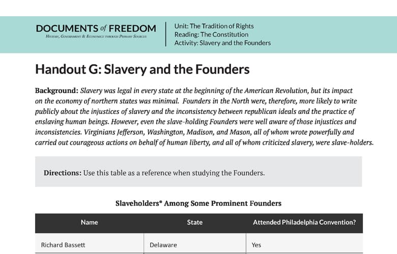 Background: Slavery was legal in every state at the beginning of the American Revolution, but its impact on the economy of northern states was minimal. Founders in the North were, therefore, more likely to write publicly about the injustices of slavery and the inconsistency between republican ideals and the practice of enslaving human beings. However, even the slave-holding Founders were well aware of those injustices and inconsistencies. Virginians Jefferson, Washington, Madison, and Mason, all of whom wrote powerfully and carried out courageous actions on behalf of human liberty, and all of whom criticized slavery, were slave-holders.