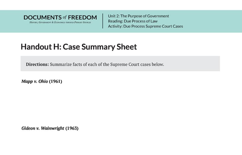 Directions: Summarize facts of each of the Supreme Court cases below.