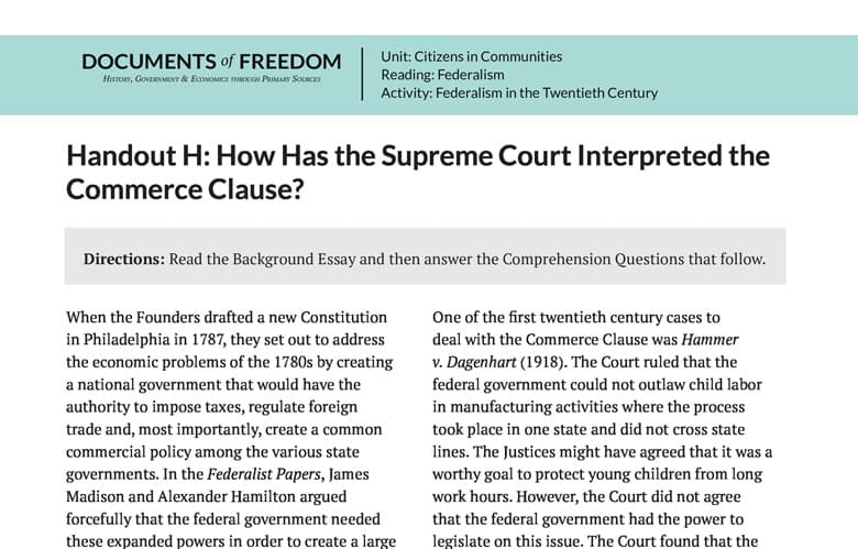 Handout H: How Has the Supreme Court Interpreted the Commerce Clause?