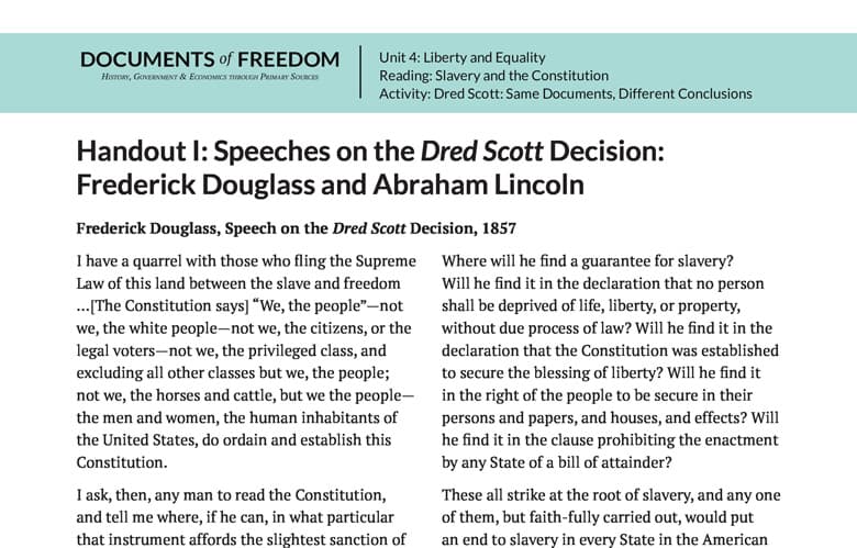 Handout I: Speeches on the Dred Scott Decision: Frederick Douglass and Abraham Lincoln