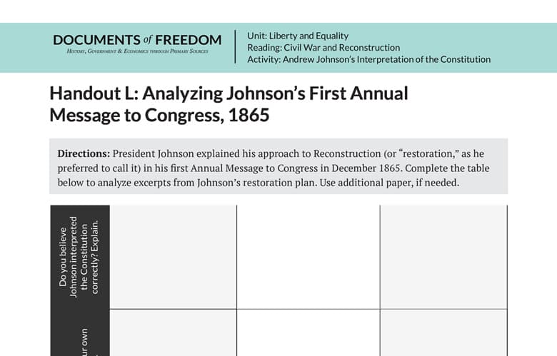 Handout L: Analyzing Johnson’s First Annual Message to Congress, 1865