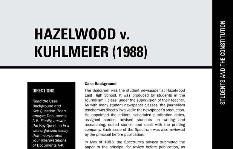 The Spectrum was the student newspaper at Hazelwood East High School. It was produced by students in the Journalism II class, under the supervision of their teacher. As with many student newspaper classes, the journalism teacher was directly involved in the newspaper’s production. He appointed the editors, scheduled publication dates, assigned stories, advised students on writing and researching, edited stories, and dealt with the printing company. Each issue of the Spectrum was also reviewed by the principal before publication.
