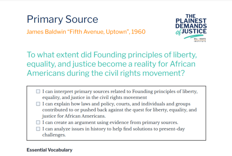- I can interpret primary sources related to Founding principles of liberty, equality, and justice in the civil rights movement.
