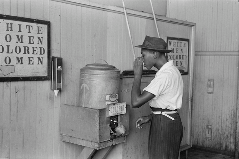 Lee, Russell, photographer. Negro drinking at “Colored” water cooler in streetcar terminal, Oklahoma City, Oklahoma. United States Oklahoma City Oklahoma, 1939. July. Photograph. https://www.loc.gov/item/2017740552/.