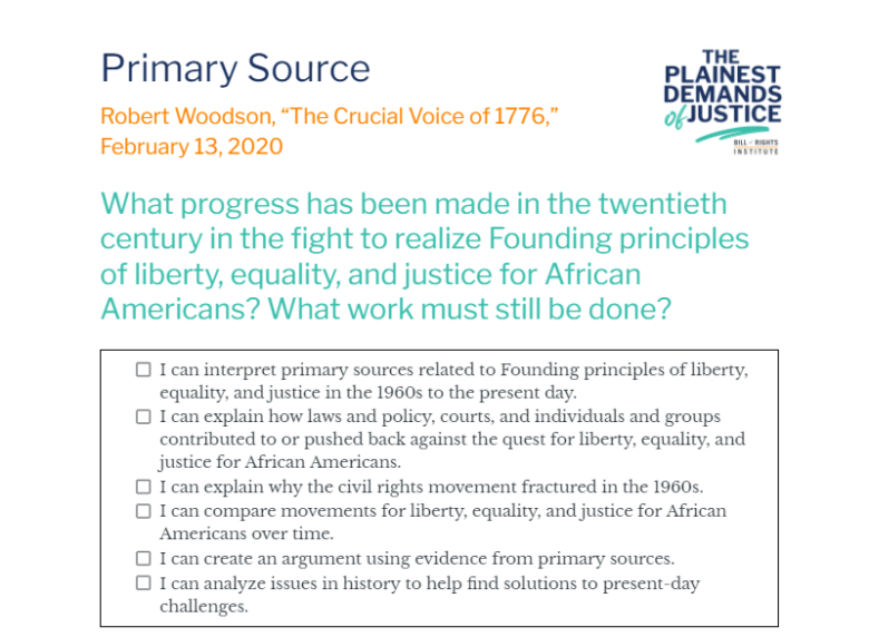 - I can interpret primary sources related to Founding principles of liberty, equality, and justice in the 1960s to the present day.