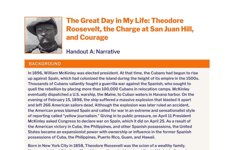 The Great Day in My Life: Theodore Roosevelt, the Charge at San Juan Hill, and Courage – Handout A: Narrative