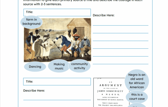 A labeling activity that encourages students to explore artwork from the time period to gain understanding.