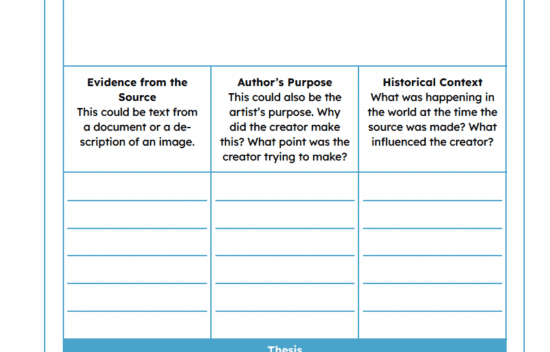 A writing activity that helps students build a thesis sentence based on the knowledge they have gained from this lesson.