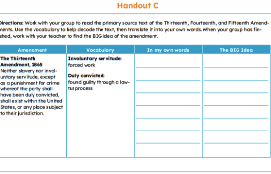A scaffolded version of the Thirteenth, Fourteenth, and Fifteenth amendments that helps students understand the big ideas of these amendments.