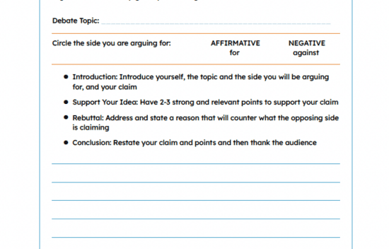 Student Debate Outline Handout | Elementary