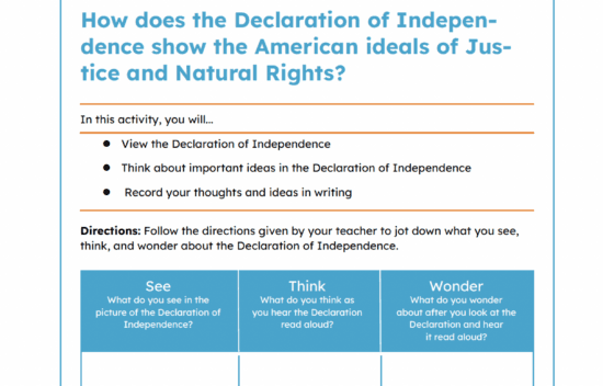 A scripted activity to guide students through exploration of the Declaration of Independence.