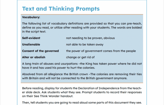 Teacher Read-Aloud Script Declaration of Independence | Elementary