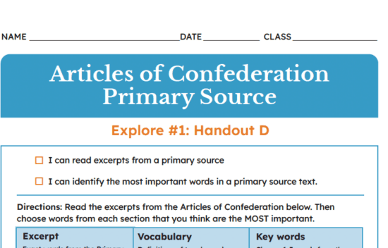 Articles of Confederation Scaffolded Primary Source | Elementary