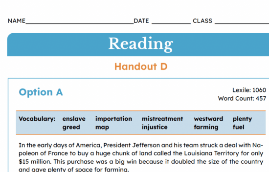 Page:HomeArrow iconCategory:PlaylistsNumber of likes0 LikesBRI Jr. Unit 7: Expansion Lexiled ReadingsThis playlist contaiShow moreGenerate BookWestward Expansion Reading | ElementaryActivity ActivityText that explores Westward Expansion and Manifest Destiny.