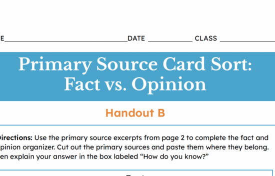 An activity that asks students to sort primary source excerpts by fact and opinion.