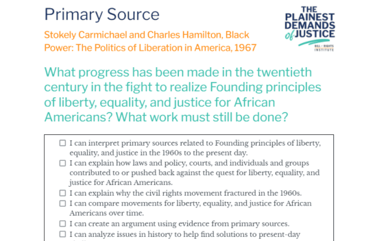 Use this lesson with the Freedom Riders Narrative; The March on Birmingham Narrative; the Black Power Narrative; the Martin Luther King Jr., "Letter from Birmingham Jail," 1963 Primary Source; the Martin Luther King Jr., "I Have a Dream," August 28, 1963 Primary Source; the Civil Disobedience across Time Lesson; and the Civil Rights DBQ Lesson to discuss the different aspects of the civil rights movement during the 1960s.
