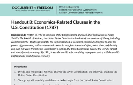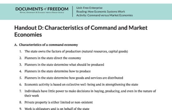 This resource encourages students to consider the economic choices that actors make every day. The resource covers the role of individuals, government, and economic principles in creating a free society. Each lesson is paired with multiple videos developed by the Hoover Institution to create a rich, blended learning experience for students.