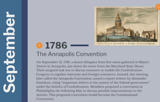 An interactive that helps students explore the timeline of the Constitutional Convention.