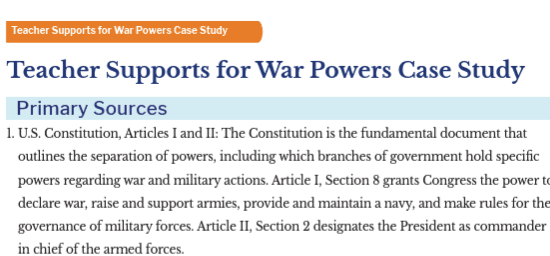 Teacher Supports for War Powers Case Study