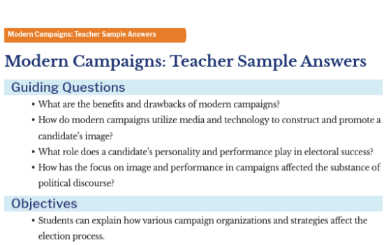 Government and Politics Unit 6: Political Participation and Elections Educator Resources