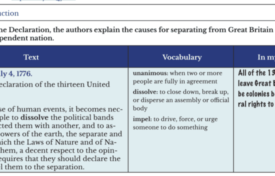 Activity to understand and explain the purpose of the Declaration of Independence.
