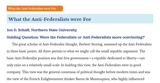 An interactive activity that asks students to catagorize the positions of the Federalist and Anti-Federalists.
