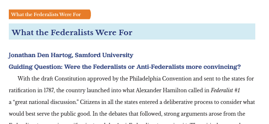 An interactive that helps students explore Founding Principles and Civic Virtues.
