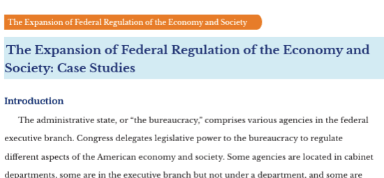 The Expansion of Federal Regulation of the Economy and Society: Case Studies