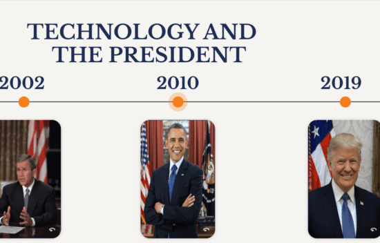 An interactive that highlights how technology has increased the reach and influence of the executive branch.