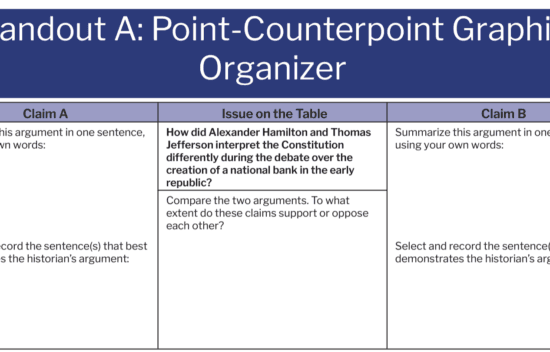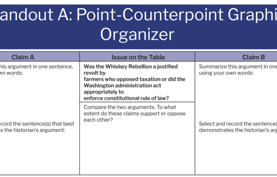 A handout to accompany the scholarly claims made in the corresponding Point-Counterpoint readings that helps student synthesize the claims put forth.