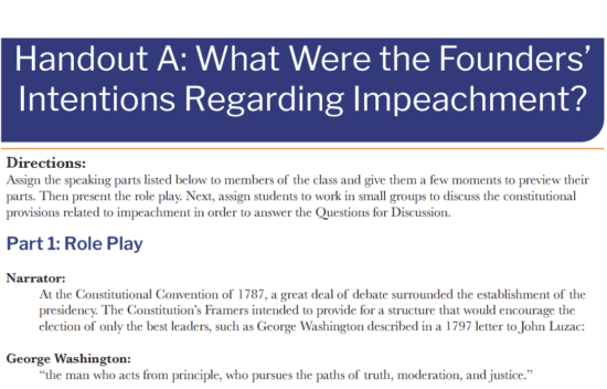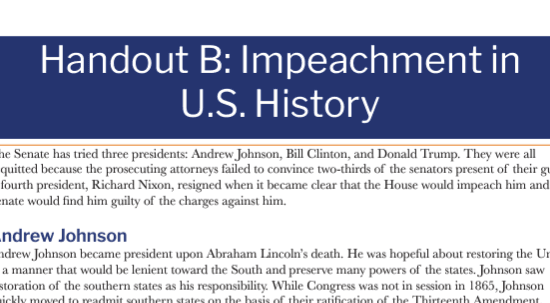A role play activity to help students explore the constitutional provisions related to impeachment and comprehension questions.