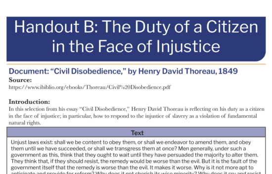 Primary Source “Civil Disobedience,” by Henry David Thoreau, 1849