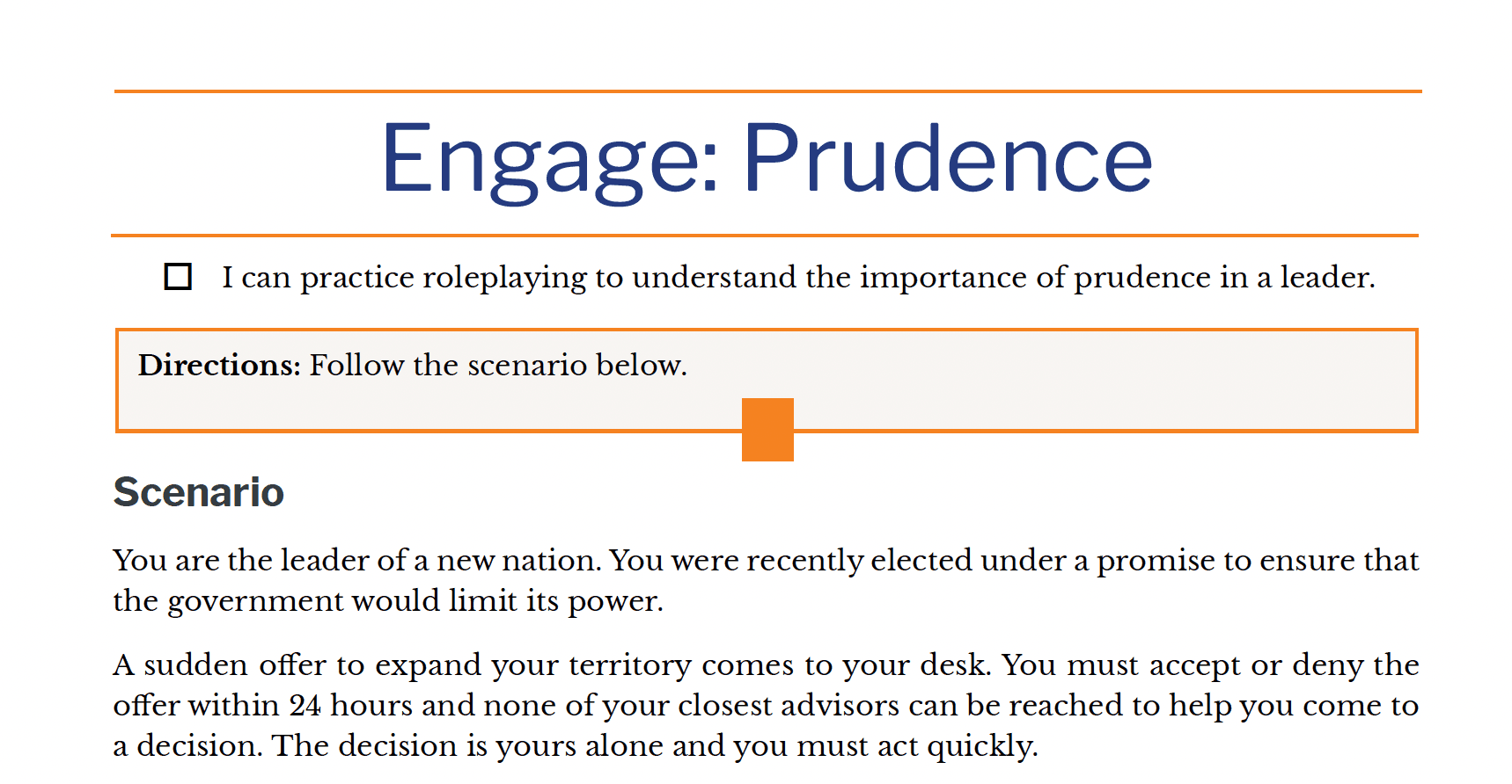 Heroes and Villains uses narratives to discuss the concepts of civic virtue in all classrooms. Each virtue narrative includes corresponding discussion guides, journal templates, a toolbox with additional activities, and suggestions for further reading on each topic or virtue.