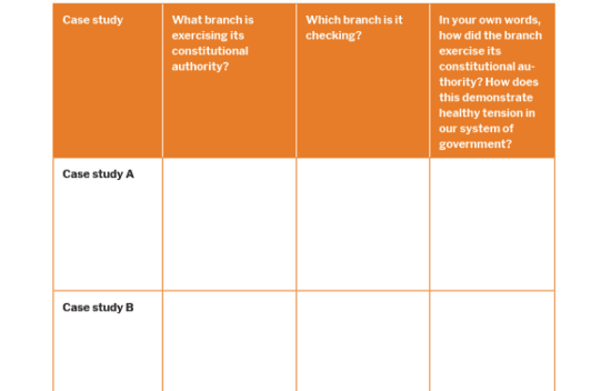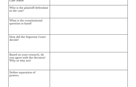 A student activity to guides students in discovering court cases that demonstrate the principle of separation of powers.