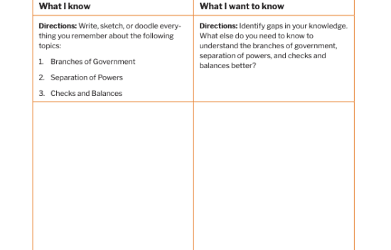 Students will evaluate their own knowledge of the branches of government, checks and balances, and separation of powers.