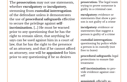Excerpts of Miranda v. Arizona (1966) and Engel v. Vitale (1962) and a simplified framework to analyze the meaning and impact of these Court rulings.