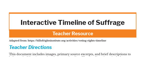 Printable resources to create an interactive timeline of suffrage rights over time.