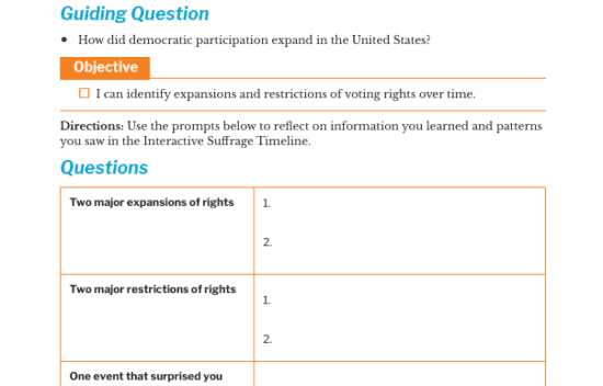 An activity to help students identify expansions and restrictions of voting rights over time.
