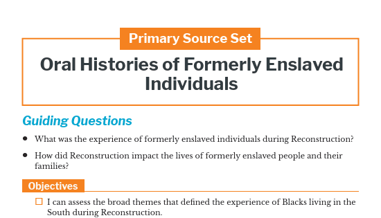 Oral Histories of Formerly Enslaved Individuals Primary Sources
