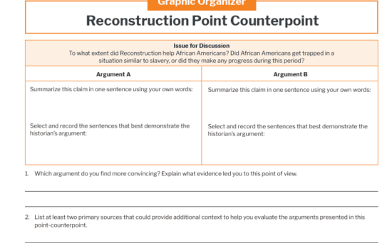 Reconstruction Point-Counterpoint – Graphic Organizer